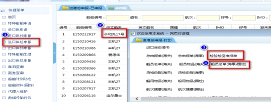 a、总申报单和船名单是从进港总申报单中带出,可添加修改操作。